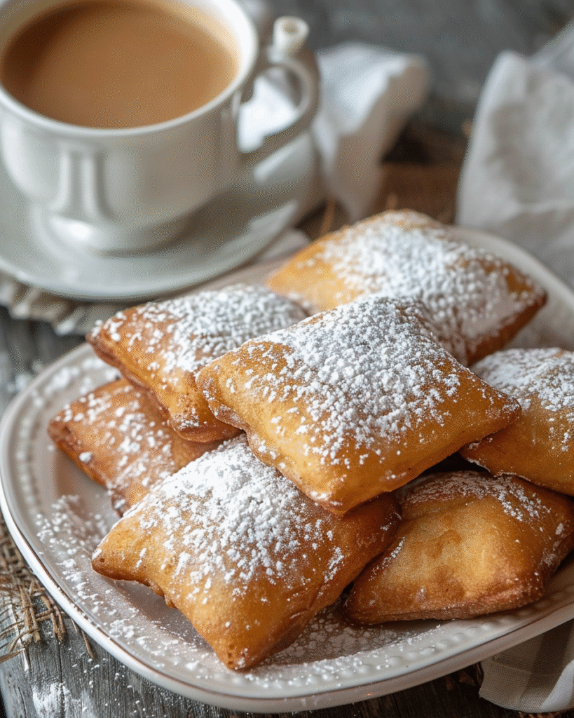 Bring the taste of the New Orleans French Quarter to your kitchen with these Authentic Louisiana Beignets — soft, pillowy fried pastries dusted with powdered sugar. Crisp on the outside and fluffy on the inside, Golden Bayou Beignets are a sweet Southern classic best enjoyed warm with a cup of café au lait. Perfect for breakfast, brunch, or dessert, they capture the joyful flavor of Louisiana in every bite.