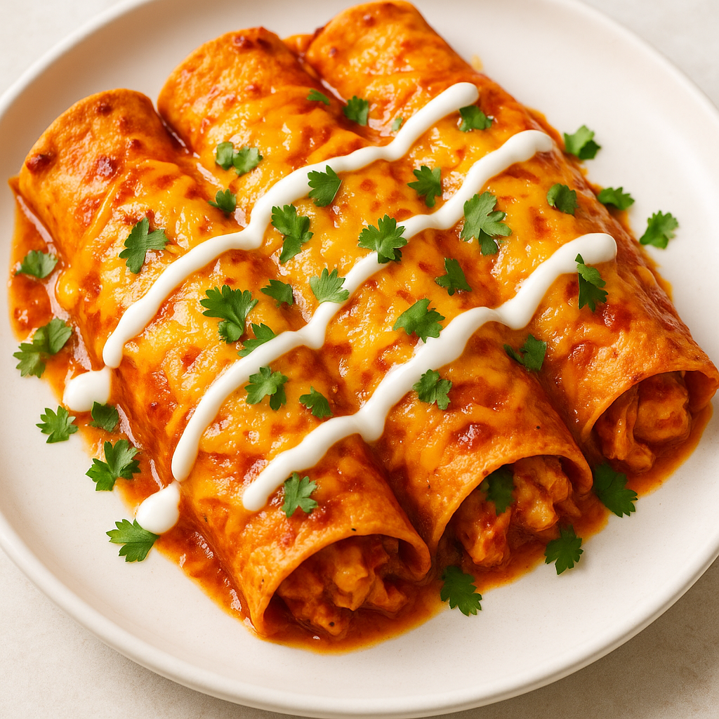 Return the cooked chicken to the skillet and mix well with the sauce. Remove from heat. - Assemble the Enchiladas: