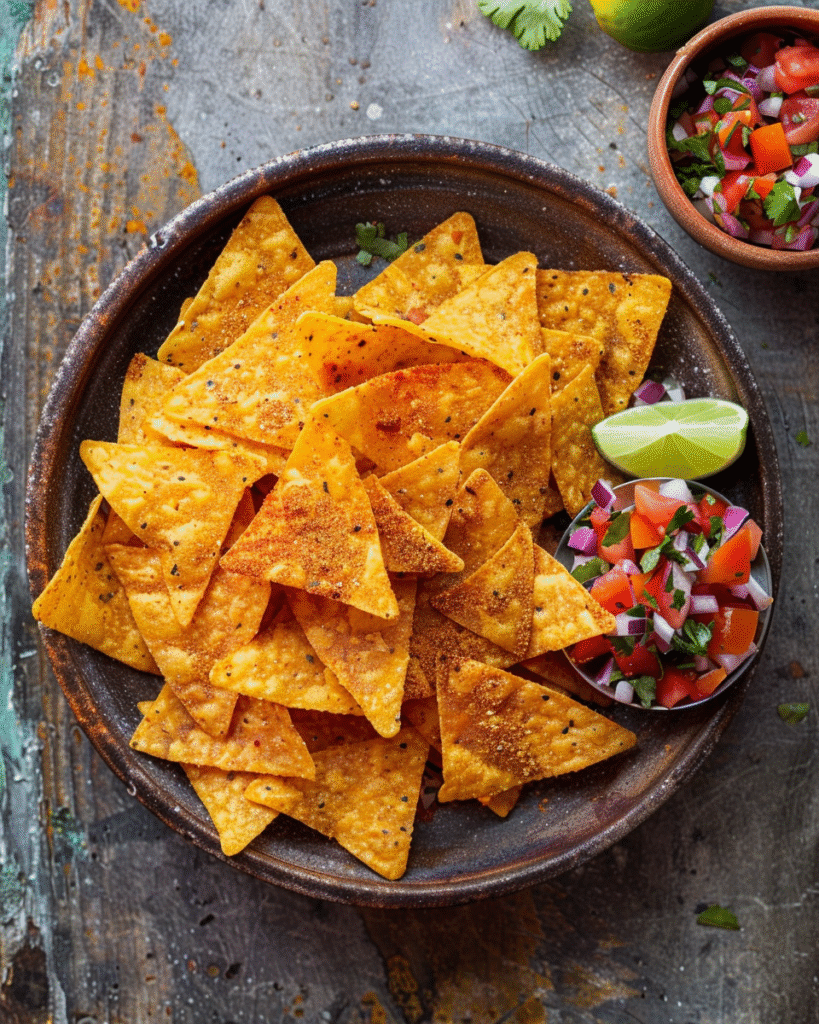 These Creole Crunch Chips are a Louisiana twist on classic tortilla chips — crispy, golden, and seasoned with Tony Chachere’s Original Creole Seasoning for a spicy, Southern-style crunch. Made from fresh yellow corn tortillas and lightly fried to perfection, they’re the ultimate snack or side for your favorite Geaux bowls, gumbo, or Creole dips.